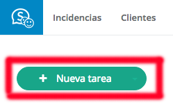 1. Para crear una tarea tienes que pulsar el botón Nueva tarea que está en la pestaña de Incidencias.