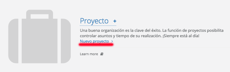 Para crear un proyecto ve a Ajustes > Proyectos y pulsa Nuevo proyecto: