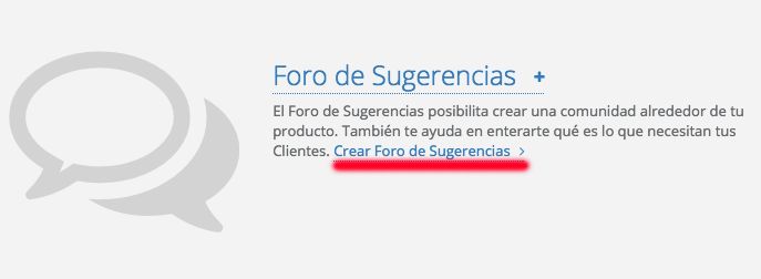 Para crear tu primer foro de sugerencias ve a Ajustes > Configuración del Foro y pulsa Crear Foro de Sugerencias.
