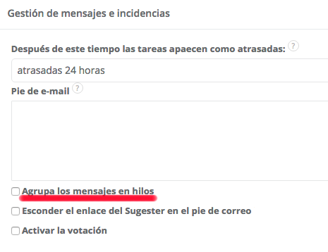 Para activar la función ve a Ajustes > Ajustes de cuenta > Gestión de mensajes e incidencias > Agrupa mensajes por hilos de conversación