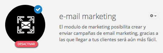 Antes de enviar tu primera campaña, tienes que asegurarte de que has activado el módulo de email marketing. Con el fin de esto, ve a